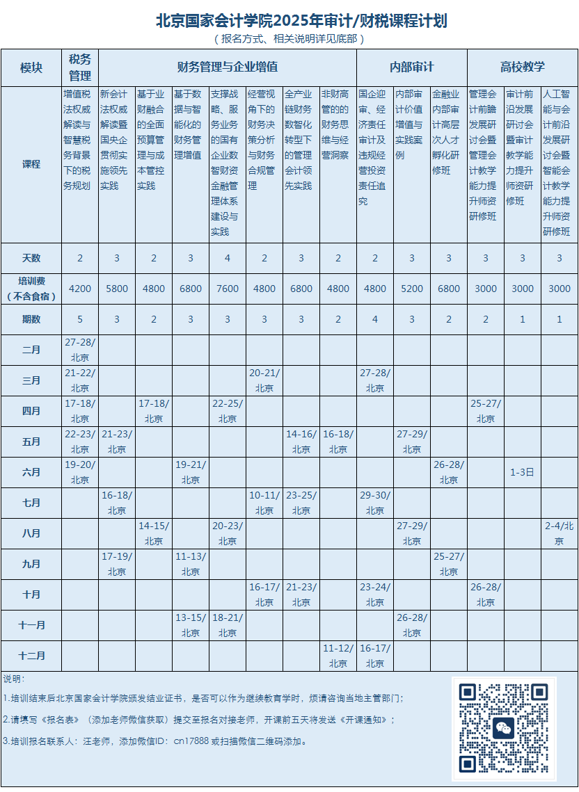 2025年·北京培训课程计划:审计/财税