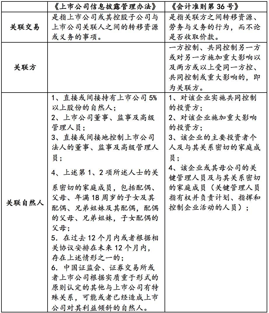 《上市公司信息披露管理办法》与《企业会计准则第36号——关联方披露》(以下简称《会计准则第36号》)里均对关联方、关联关系及关联交易等相关概念做了详细定义。