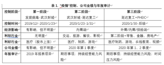 如下表1所示,将疫情控制分为三个阶段,分阶段讨论疫情控制对上市公司业绩影响。