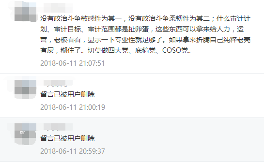 关于评论交流,先插录极个别人针对《 一个举报调查,竟反让审计团队陷入绝境…》一文的连续偏激留言(部分已自行删除):