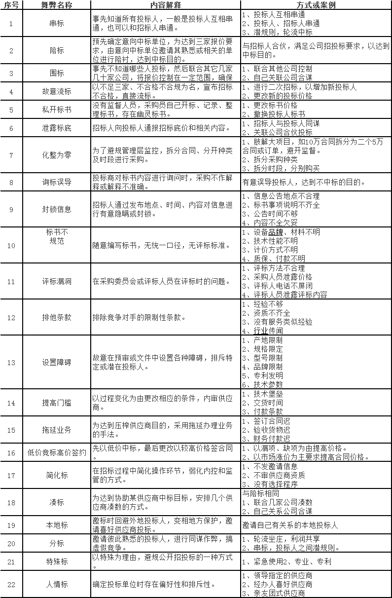 为帮助广大内审或管理人员,识别舞弊操作方式,防患采购业务风险,同时为了维护公开、公平、公正的竞争环境,维护组织单位利益,提升监管人员水平,特对以下各种舞弊方式进行分析归纳总结,与你共享:
