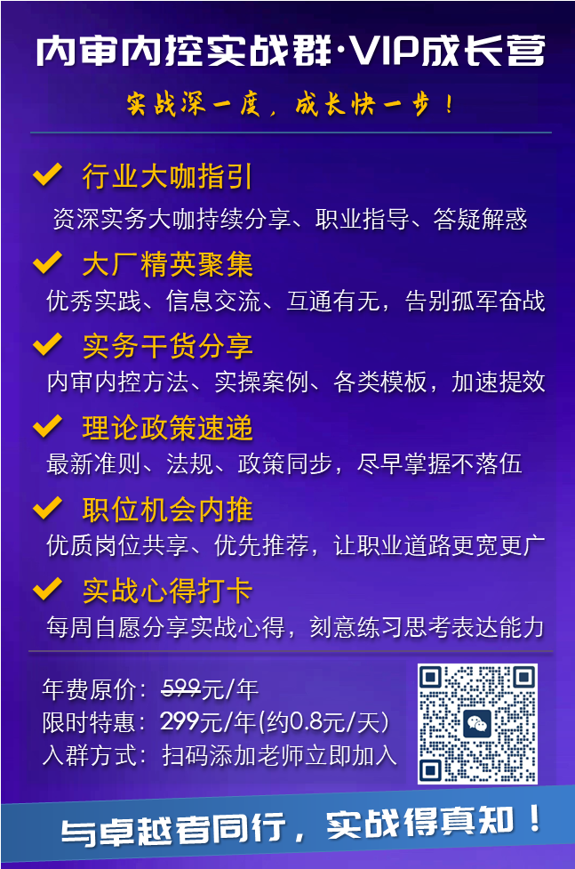 加入:内审内控实战群·VIP成长营