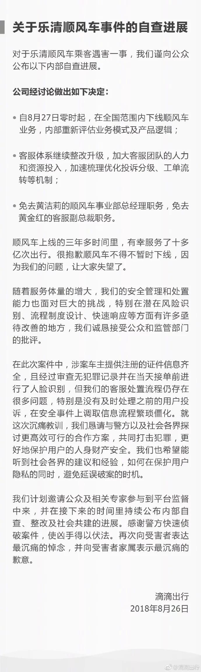 时至今日,滴滴终于认识到了自己的某些风险管控缺陷,26日,滴滴公布了一份《关于乐清顺风车事件的自查进展》,其中除了公开内部业务、人员调整外,特别反思了自身的几点问题:潜在风险识别、流程制度设计、快速响应机制。